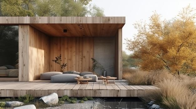 Дизайн бани с верандой должен быть гармоничным. Деревенский стиль подчеркнут натуральные материалы⁚ дерево, камень, лен. Для современного стиля подойдут стекло и металл.